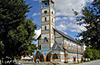 Se trata de una construcción moderna y austera, con una concepción de líneas puras. Allí también se venera a la beata Laura Vicuña.